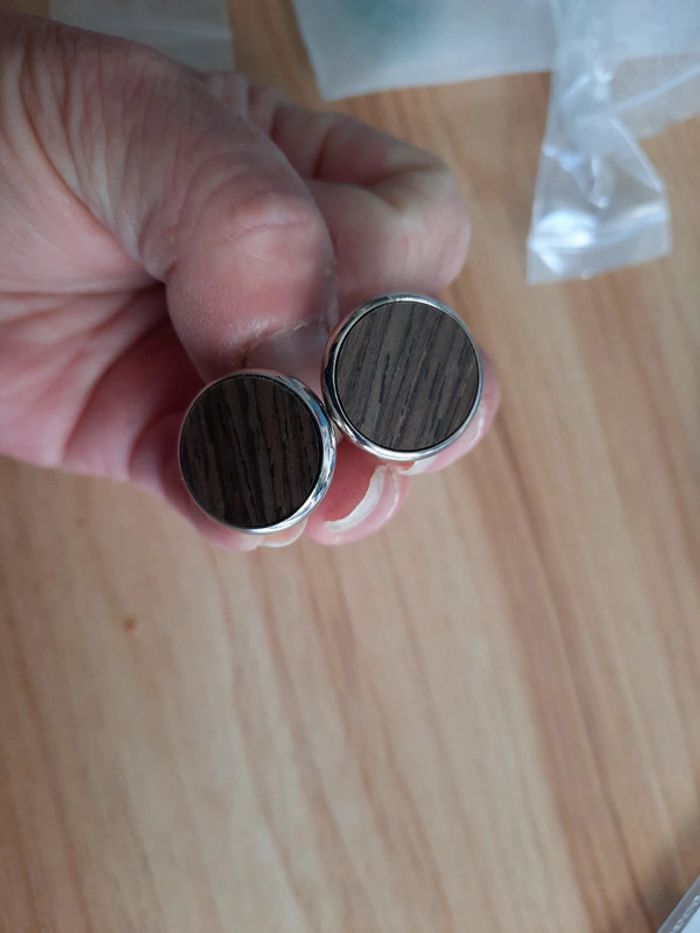 A LIRE L ANNONCE AVANT 😉 ‐-‐---------------------------- Boutons de manchettes neuf couleur bois Y a un léger petit défaut sur l un des bouton le dessu et légèrement plus haut que l autre Mais cela ceux voit de très près voir dernière photo N hésitez pas à faire un tour dans mon dressing et achetez en lot vous ferez des économies sur les fdp 😉 😉 #moutsimoumounebijouxhommes