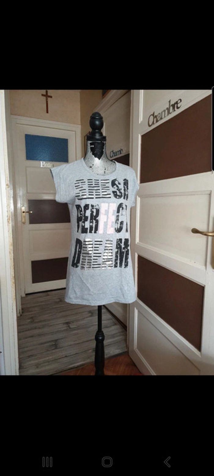 A bien lire l annonce 😜 Tee shirt femme a strass T 46/48 Mais il taille petit donc plutôt un 42/44 !! en tres bonne état N hésitez pas à faire un tour dans mon dressing et achetez en lot vous ferez des économies sur les fdp 😉 😉 😉 #moutsimoumounehabitfemmetaillexxxl