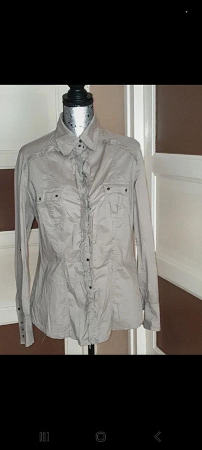 Chemise a froufrou et a pression de t 38/40 de couleur vert clair En tres bonne etat N hesitez a pas a faire un tour sur mon dressing et acheter en lot vous ferez des économies sur les fdp 😉 #moutsimoumounehabitfemmetaille38