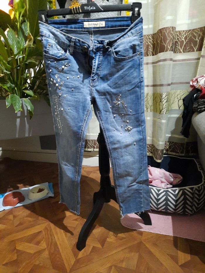 Pantacourt ou pantalon tout dépend de la grandeur de la personne de taille S--》36 Couper au bas du pantalon et manque quele strass d ou la tache de colle autrement il est en très bonne état N hésitez pas à faire un tour dans mon dressing et achetez en lot vous ferez des économies sur les fdp 😉 😉 #moutsimoumounehabitfemmetaille36 N😇