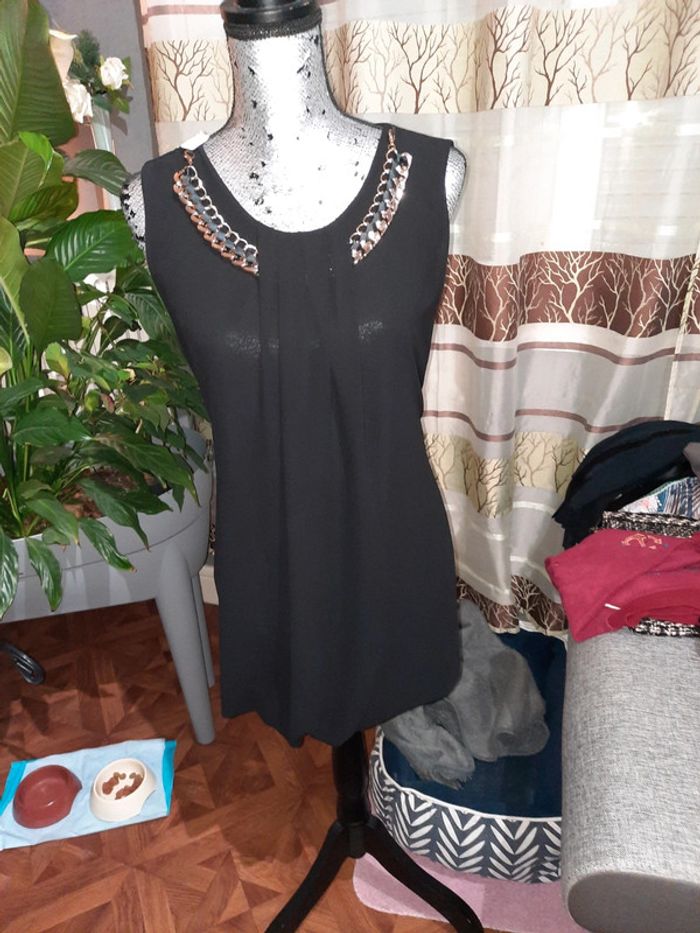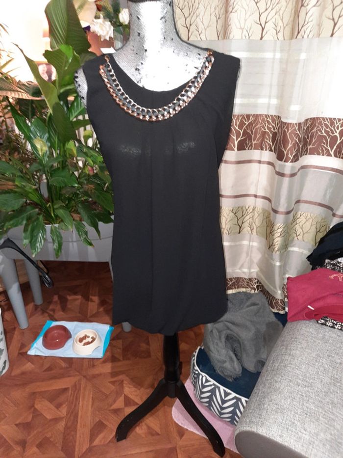 Très belle tunique la chaîne au niveau du cou peut ceux mettre dessu ou dessou ou ont peut même l enlevé de taille 38 en très bonne état N hésitez pas à faire un tour dans mon dressing et achetez en lot vous ferez des économies sur les fdp 😉 😉 #moutsimoumounehabitfemmetaille38 N😇