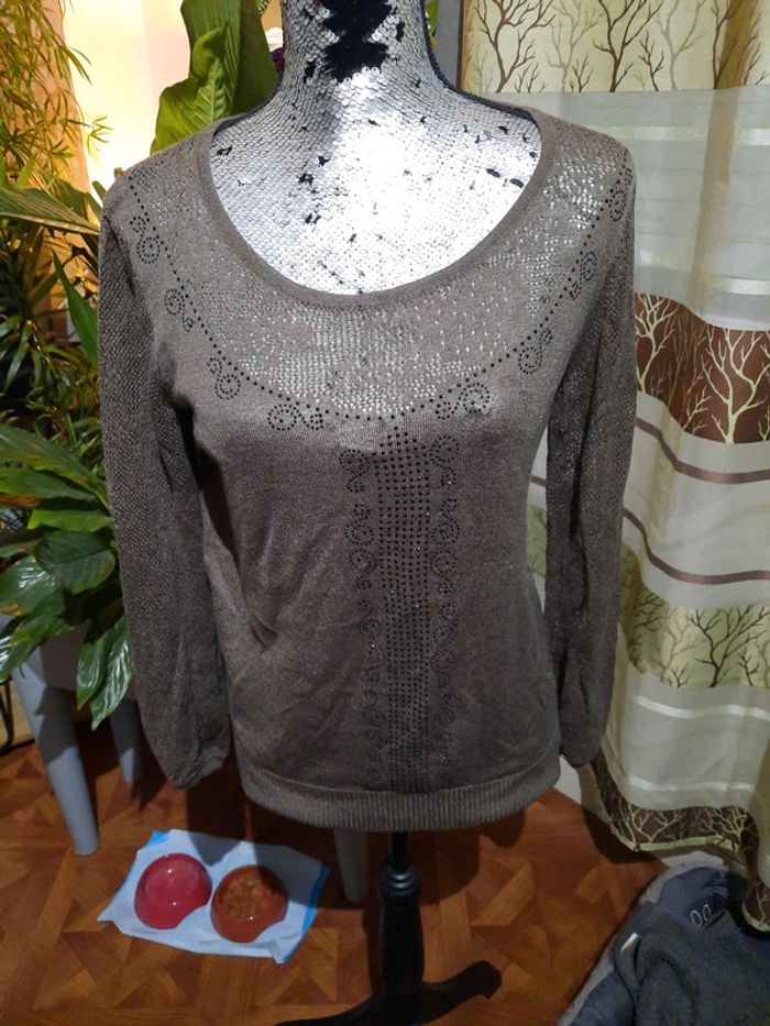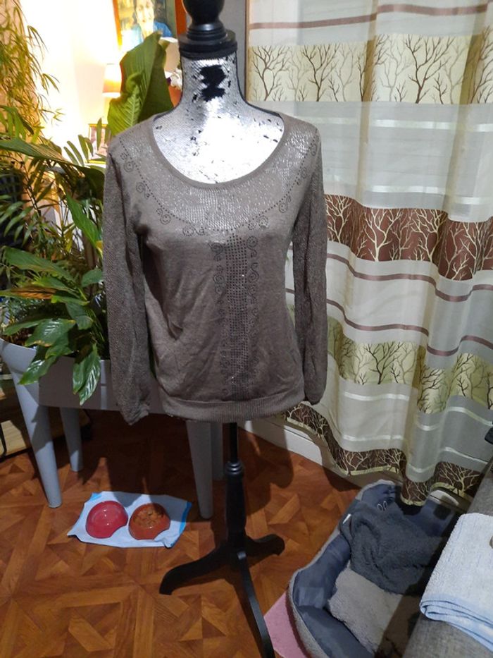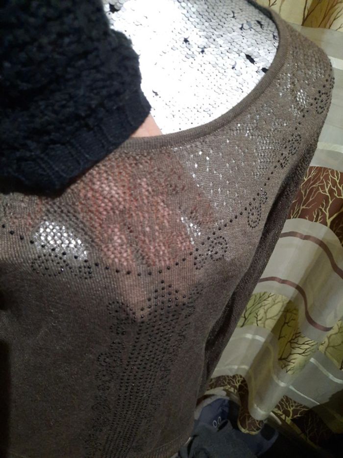 Pull transparent audessu de la poitrine et strass bréal taille 2--》38en très bonne état N hésitez pas à faire un tour dans mon dressing et achetez en lot vous ferez des économies sur les fdp 😉 😉 #moutsimoumounehabitfemmetaille38 N😇