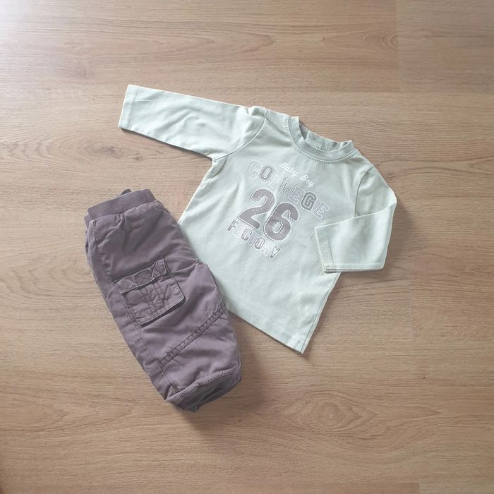 💚 Ensemble tee-shirt avec capuche pantalon Tex/Kiabi 6 mois #emyfleury_6moisgarçon - photo numéro 2
