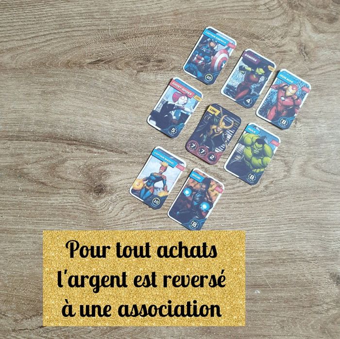 ✏️ Retrouver tous les articles classez par catégories et par tailles avec # voir dans à propos ⚠ LIRE L'ANNONCE ENTIÈREMENT ⚠ Ne pas valider l'annonce 👉🏻 Pour tout achats de cartes, l'argent est reversé à une association 👈🏻 #emyfleury_cartes #marvelcartesleclerc #marvel #marvel2023 Lot 8 cartes 2.11.20.34.41.62.73.99 taille réelle cartes imprimés et plastifier dos de la cartes est blanche
