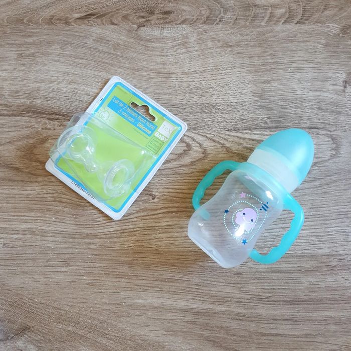 🧸Lot biberon 120 ml avec poignées et 2 tetines neuve Tex 🧸 - photo numéro 3