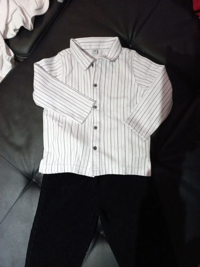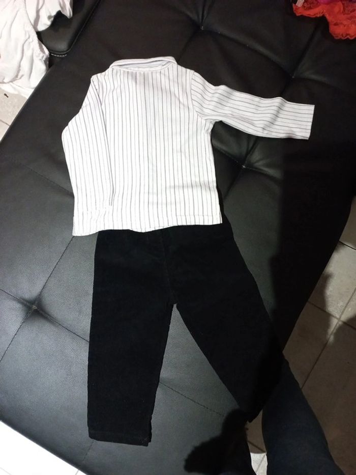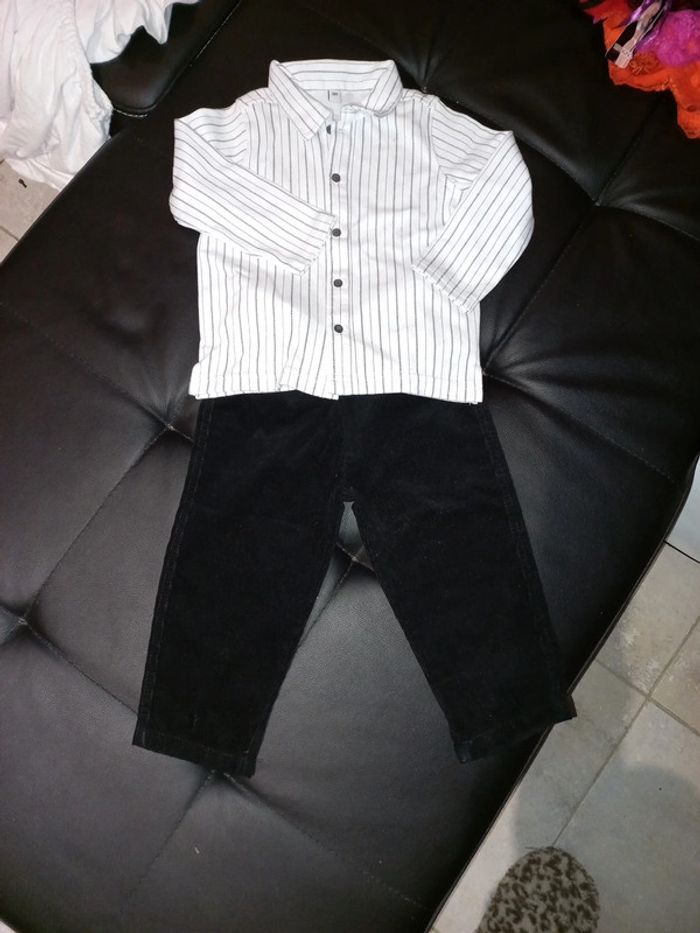 Jamais porté. Chemise épaisse blanche rayée noir. Pantalon noir velours