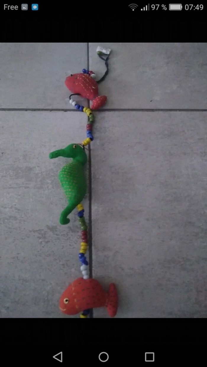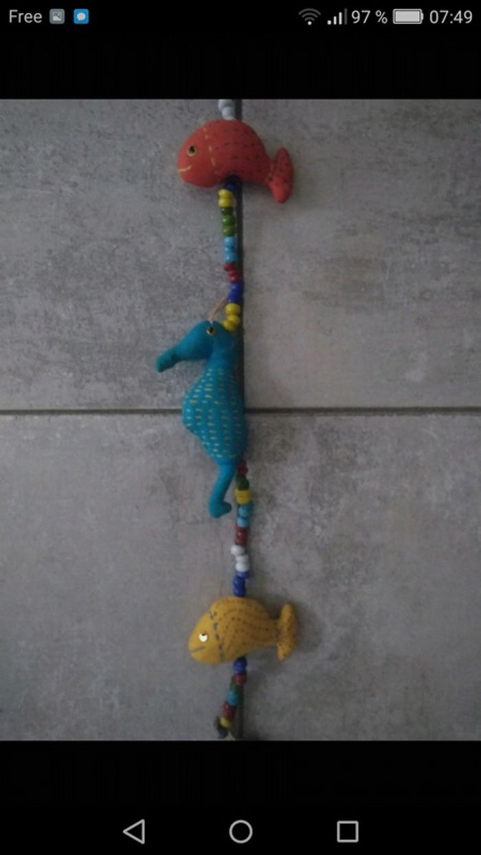 idéale pour une chambre d'enfant. Hippocampes, poissons, petite clochette...