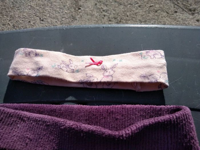 Pantalon violet et bandeau rose motifs lapins.#dpam #okaidi #gemo #obaibi #orchestra