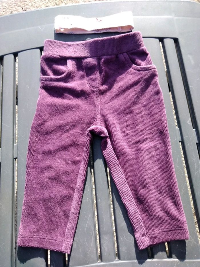 Pantalon en velours et bandeau fille 9 mois - photo numéro 1