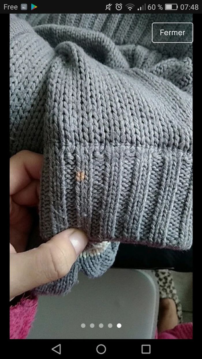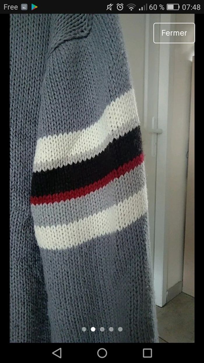 Très chaud. Une maille n'a pas la même couleur que les autres, erreur de fabrication.