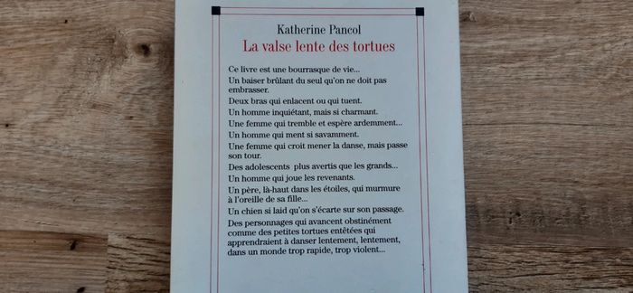 Auteur(s) : Katherine Pancol 688 pages Ce livre est une bourrasque de vie... Un baiser brûlant du seul qu’on ne doit pas embrasser… Deux bras qui enlacent ou qui tuent… Un homme inquiétant, mais si charmant… Une femme qui tremble et espère ardemment... Un homme qui ment si savamment… Une femme qui croit mener la danse, mais passe son tour… Des adolescents plus avertis que les grands... Un homme qui joue les revenants… Un père, là-haut dans les étoiles… qui murmure à l’oreille de sa fille... Un chien si laid qu’on s’écarte sur son passage… Des personnages qui avancent obstinément... comme des petites tortues entêtées… qui apprendraient à danser lentement, lentement… dans un monde trop rapide, trop violent... Joséphine, la quarantaine, soudain romancière à succès, quitte son Courbevoie natal et sa sour pour s'installer à Paris dans un bel appartement. Bientôt, elle regrette sa banlieue. La suite de « Les yeux jaunes du crocodile ».