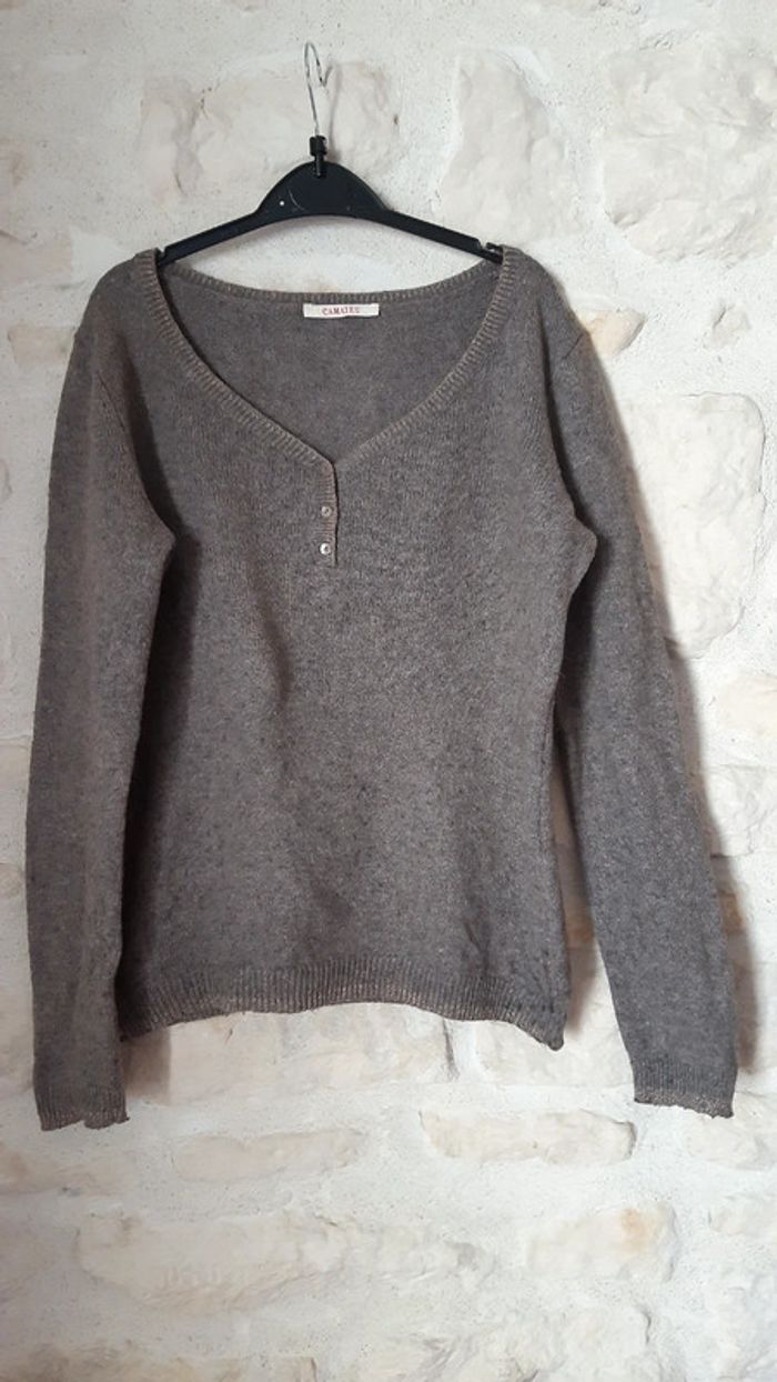 Pull taille M brun col V avec alpaga - photo numéro 1