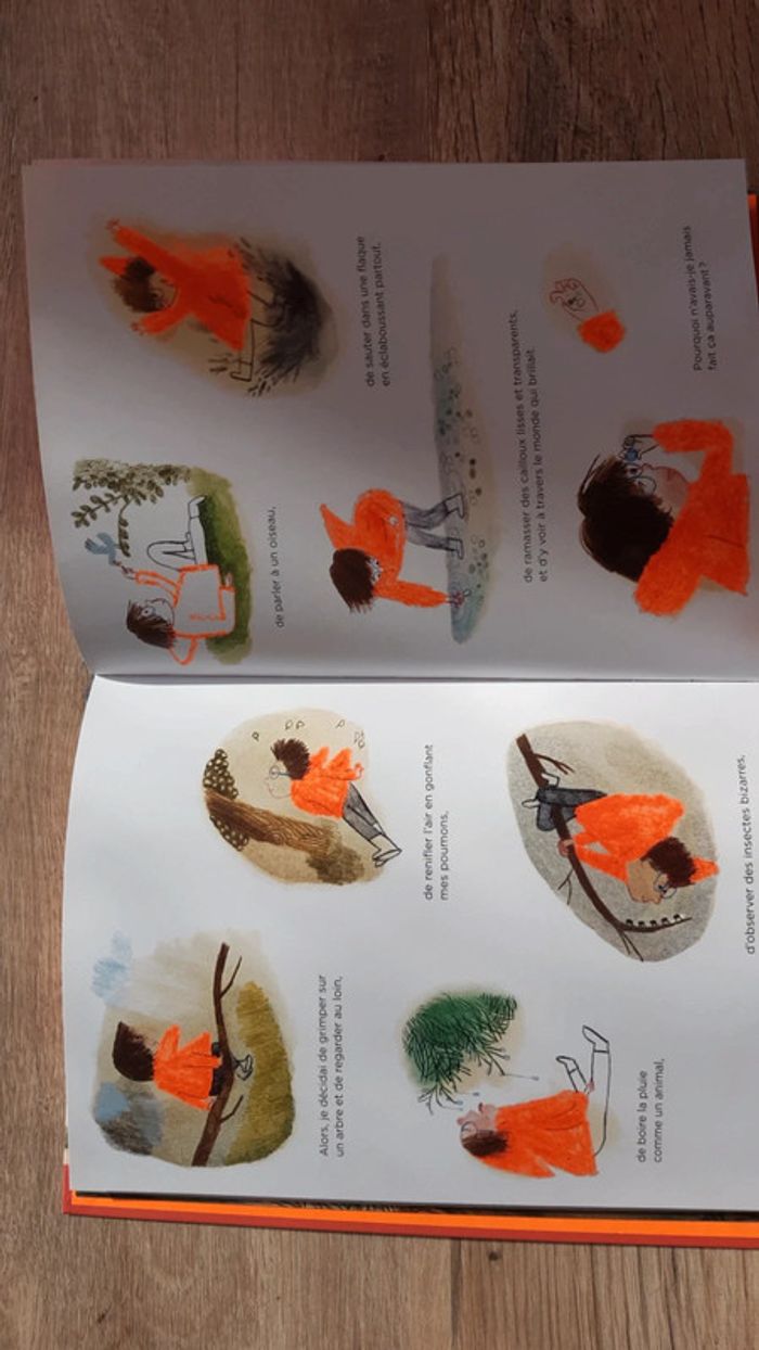 De très belles illustrations et plein de sensibilité pour apprendre aux enfants à sortir des écrans #déconnection Je vends car en double Ideal à partir de 6 ans Dans une maison de vacances, un garçon «  tue des martiens »... Monde virtuel du jeu électronique, ennui et pluie sont les compagnons de ses journées. Lorsqu'il sort, il part explorer la nature d'un oeil bougon et laisse tomber sa console au fond de l'étang. Que va-t-il faire, privé de sa seule distraction ? Son désespoir ne dure pas. Peu à peu, il découvre autour de lui une nature magique, qu'il voit ou imagine animée de regards et de signes, d'une vie fourmillante et insoupçonnée. Le soleil perce enfin les nuages et, de retour à la maison, le garçon se sent prêt : à prendre la main de sa mère, à vivre les vacances...