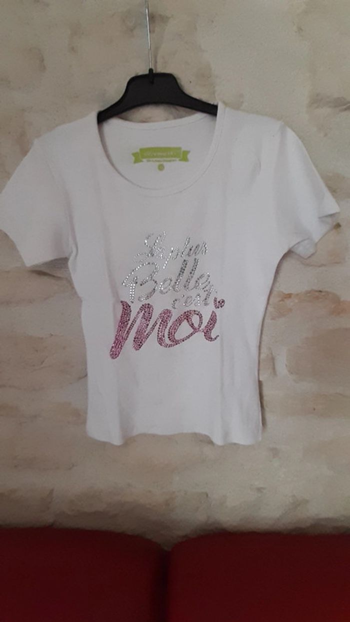 Tee-shirt 10 ans manches courte blanc strass - photo numéro 1