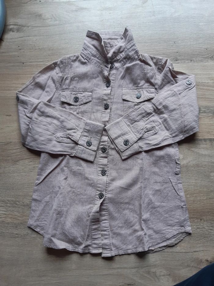 Effet très naturel A servi avec des passants à la taille pour y insérer une ceinture si vous le souhaitez. Couleur marron clair.