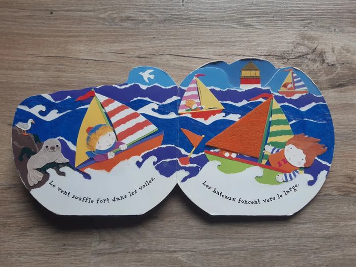 A bien servi car ma fille l adorait Quelques trace d usure mais rien qui n n'empêche la lecture et l utilisation Avec des volets en feutrine a soulever. Pages cartonnées.
