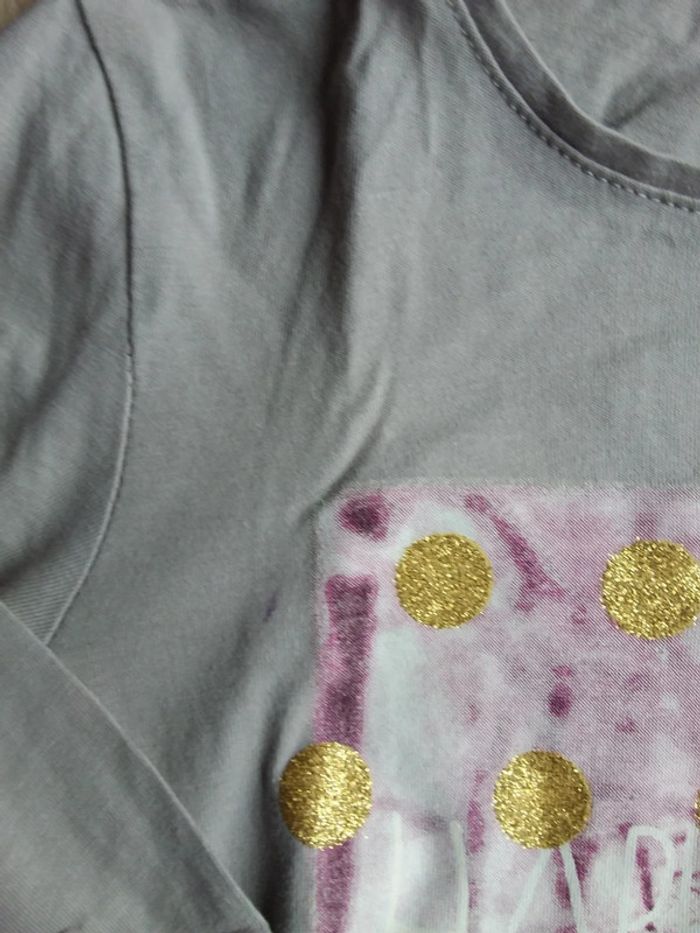 Tee-shirt gris et doré neige 8 ans manches longues - photo numéro 3
