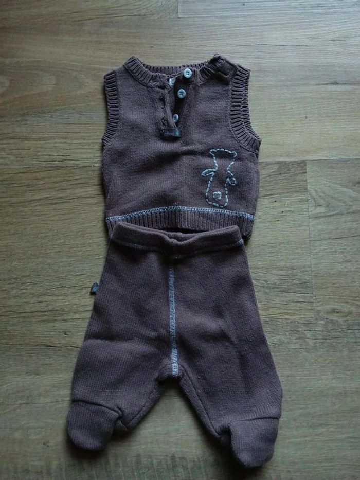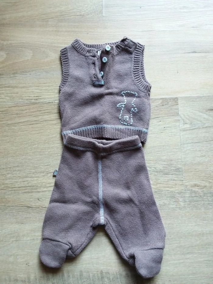 Effet tricot pour cet adorable ensemble de naissance 0 mois 50cm marron brun