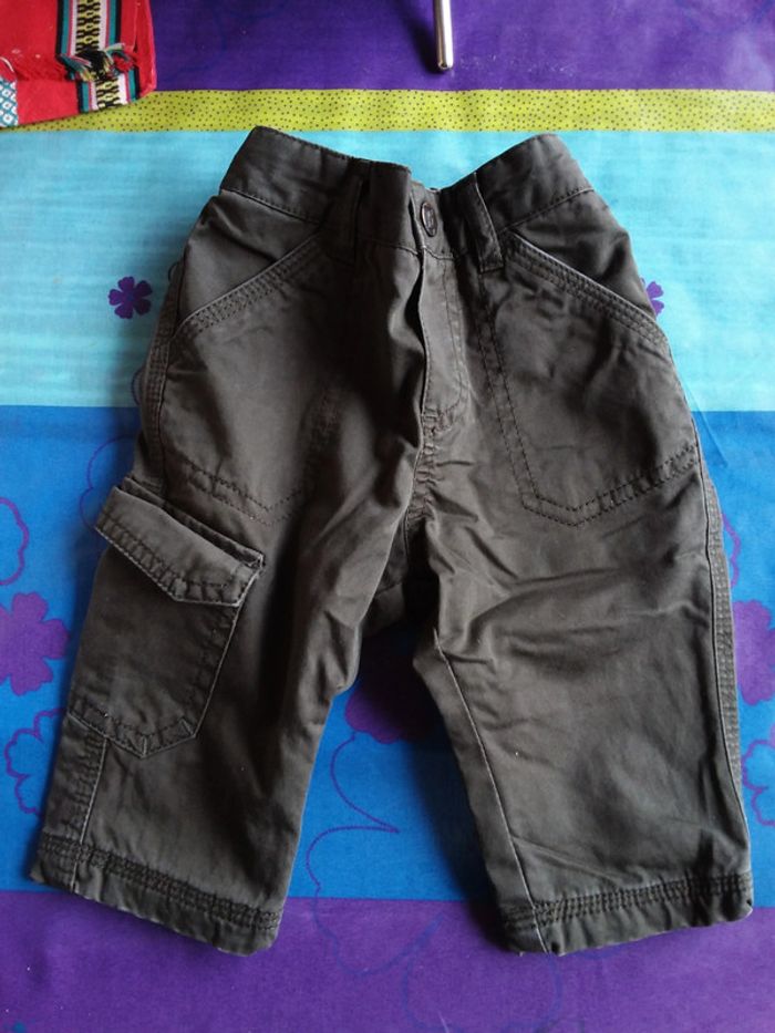 Kaki/ marron foncé. Taille Elastiquée + bouton pression - Taille ajustable - 68 cm 6 mois.