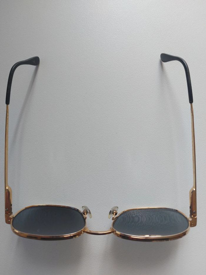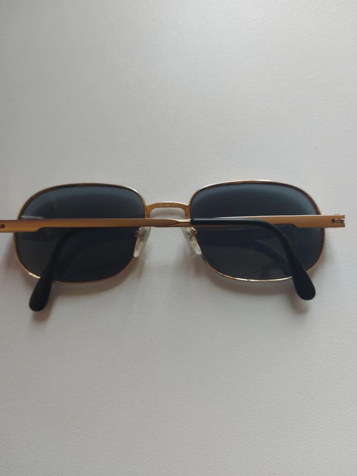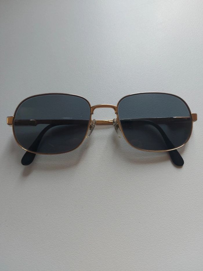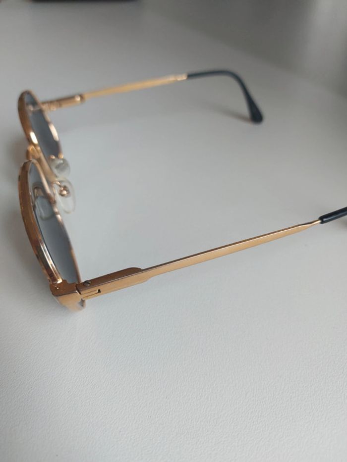 Lunette solaire homme vintage monture doré de qualité remis à neuf pour la vente nettoyage bac ultrasons + changement des coussinets de nez + verres teinte gris foncé neuf