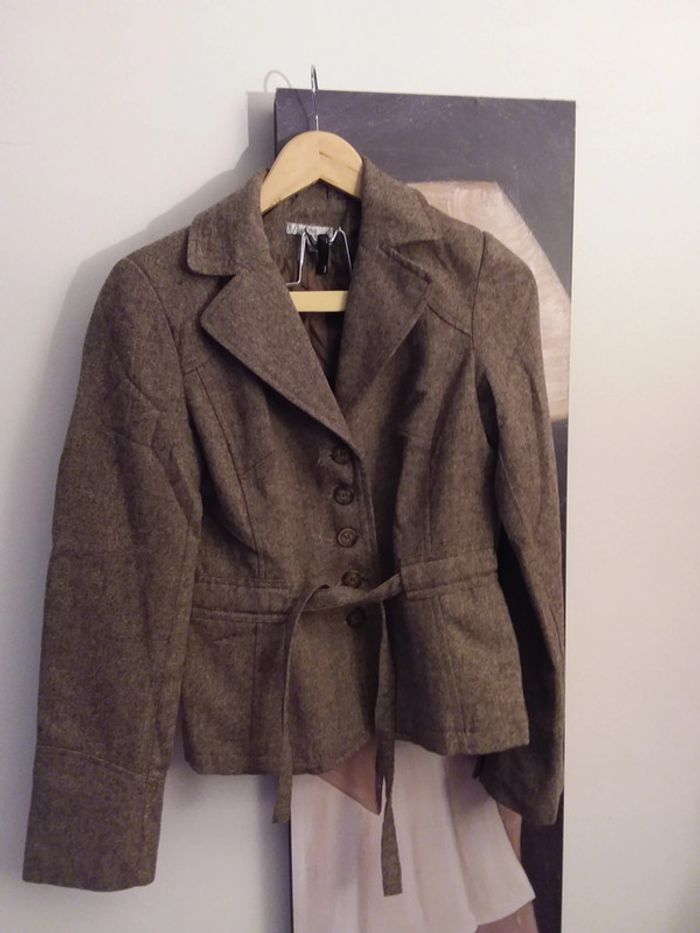 Veste chic effet tweed avec une ceinture qui amène de l'elegance