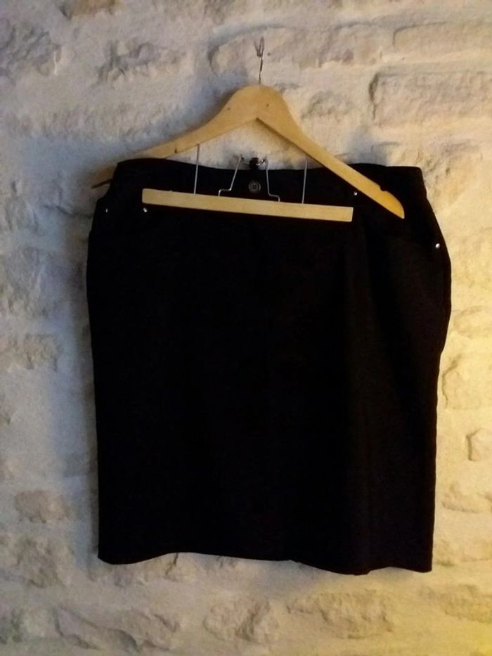 Jupe droite noire très peu mise avec 2 poche 1 fermeture et un bouton Taille 48 46 cm à la taille 56 cm de hauteur