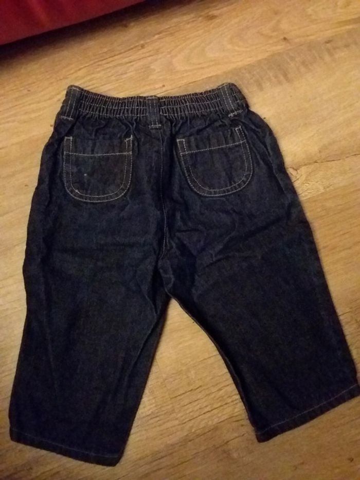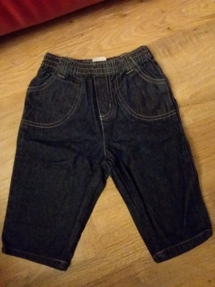 Jean bleu foncé taille élastique Comme neuf lavé une fois mais jamais porté. 12 mois. Pour garçon comme pour fille.