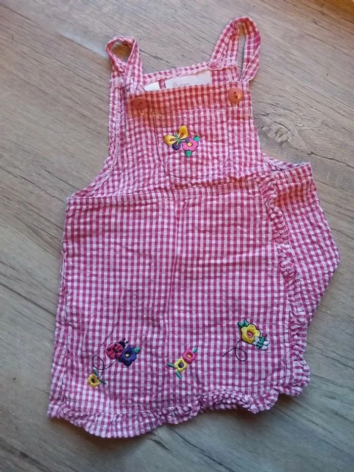 Robe à bretelles brodée Vichy rose fushia 12 mois