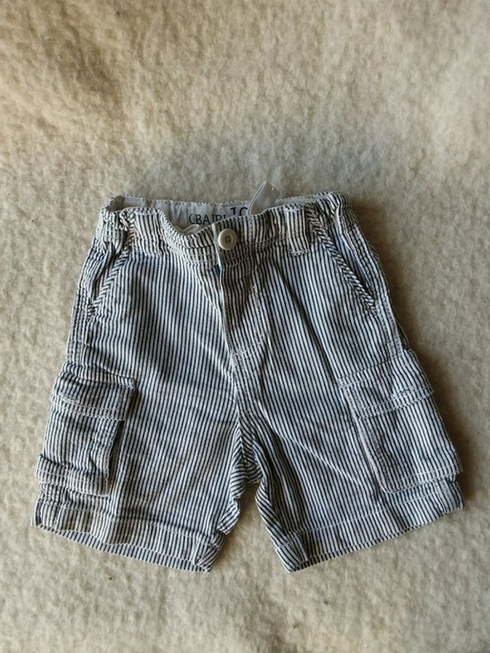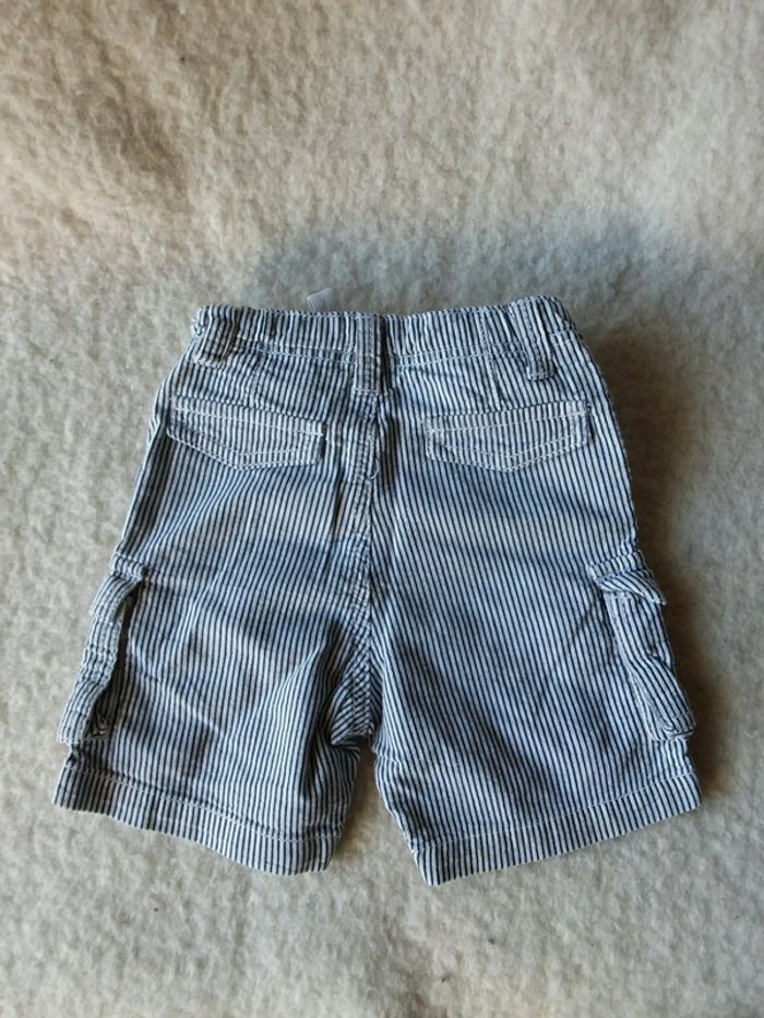 Bermuda short blanc rayé bleu marine 18 mois 81 cm #GARCON18MNL se ressert à la ceinture pour évoluer avec la croissance
