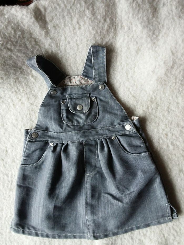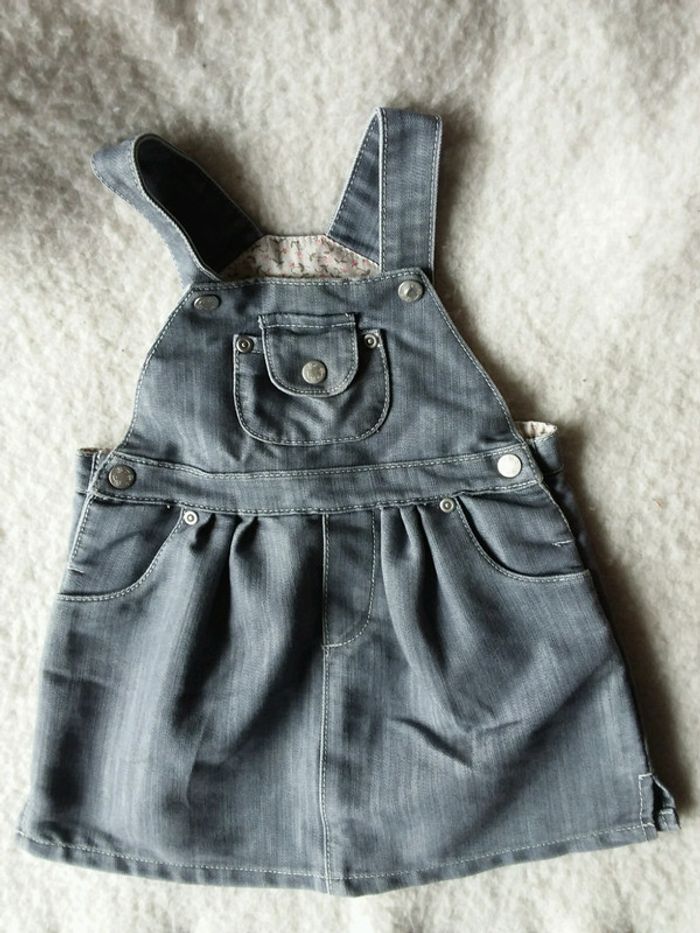 Jolie robe en jean gris a bretelles avec doublure à fleurs #FILLE18MNL 18 mois 81 cm