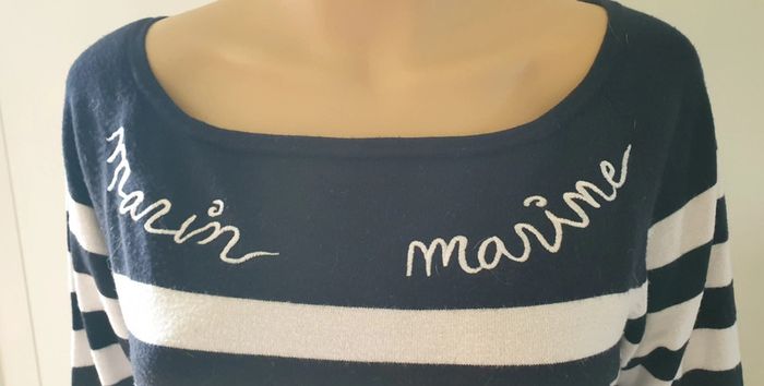 ✏️ Retrouver tous les articles classez par catégories et par tailles voir dans à propos #emyfleury_42femme Pul fin marin Taille 42 XL Marin marin Tache et tres légèrement boulocher voir photo