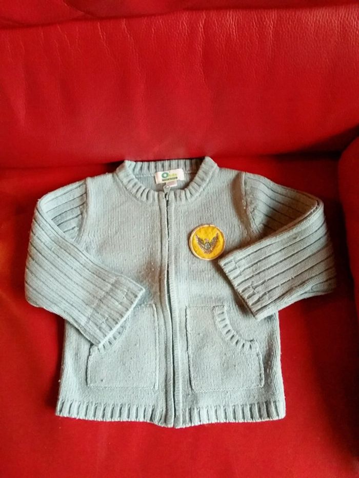 Gilet bleu clair avec fermeture. 2 ans 86 cm. Un peu bouloché #GARCON2NL
