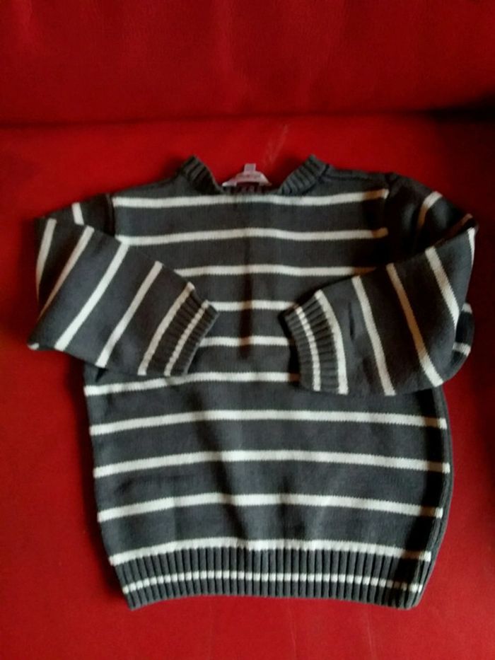 Pull gris foncé avec rayures gris clair sur les manches et le dos col avec boutons 24 mois 86cm #GARCON2NL N'hésitez pas à faire des lots pour réduire les frais de port