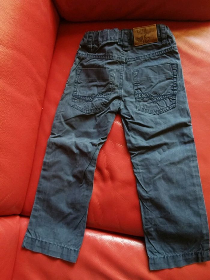 Pantalon en toile bleu marine. Se resserre à la ceinture pour suivre la croissance. Taille 3 ans 98cm. Fermeture à crochet à l'intérieur plus pratique (bouton fictif à l'extérieur). #GARCON3NL