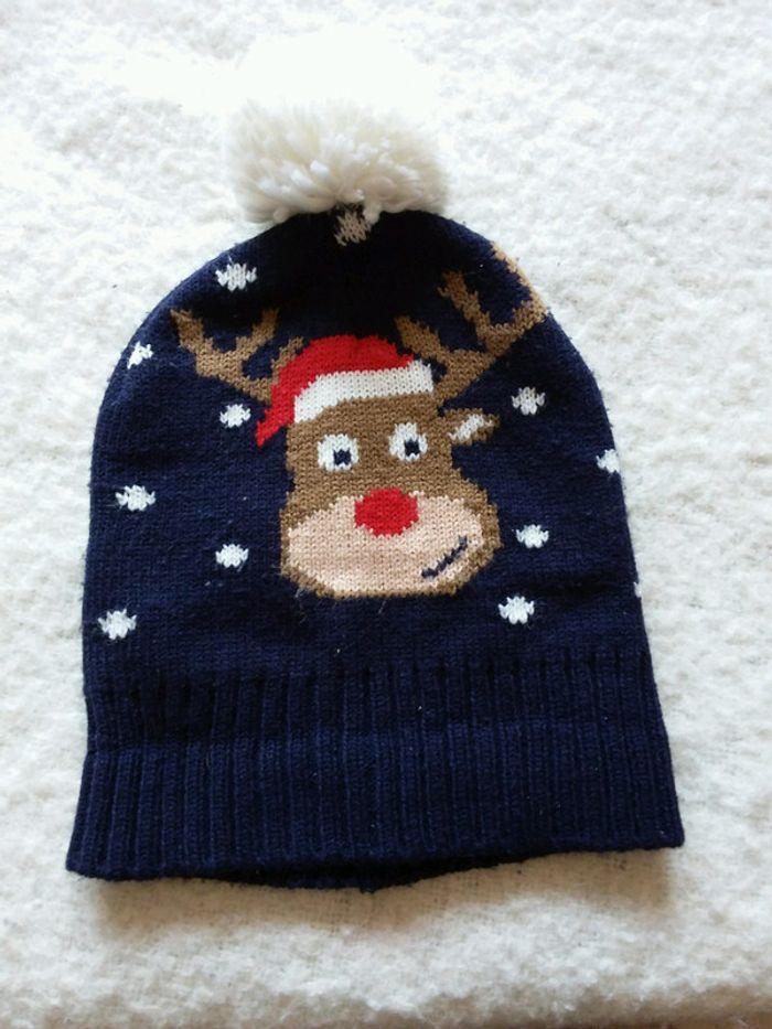 Bonnet à pompon blanc motif #cerf très bon état #noël #noel