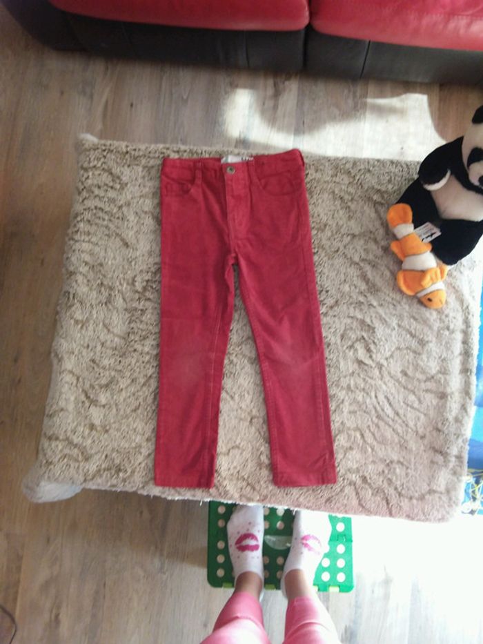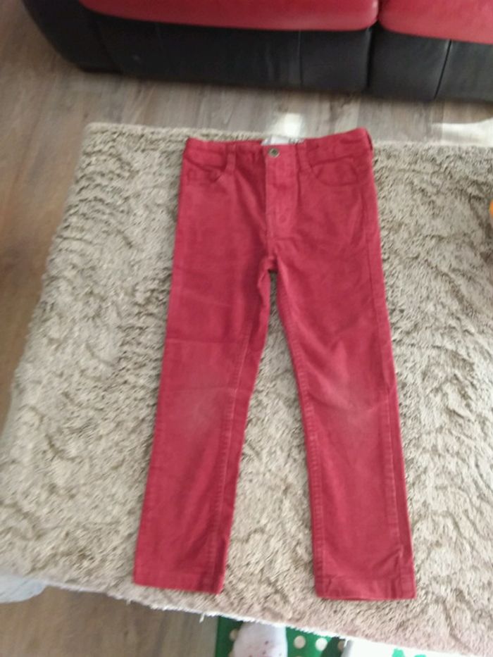 Pantalon velour slim rouge fille ou garçon. Bon état, très légère décoloration aux genoux. Taille ajustable. #FILLE4NL