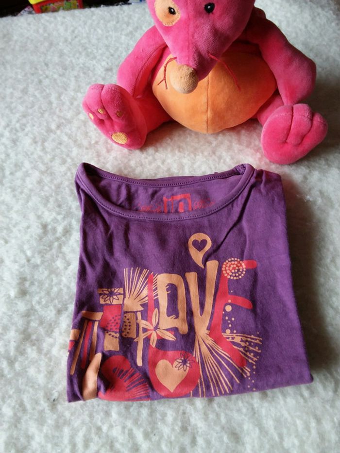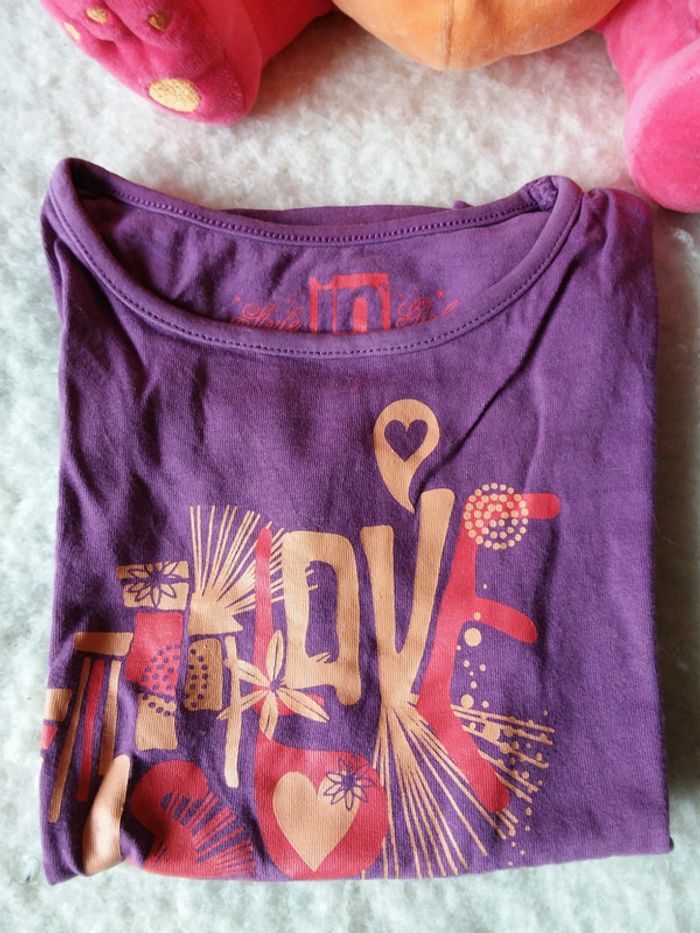 Joli tee-shirt manches courtes "love is beautiful" violet tres peu porté #FILLE4NL