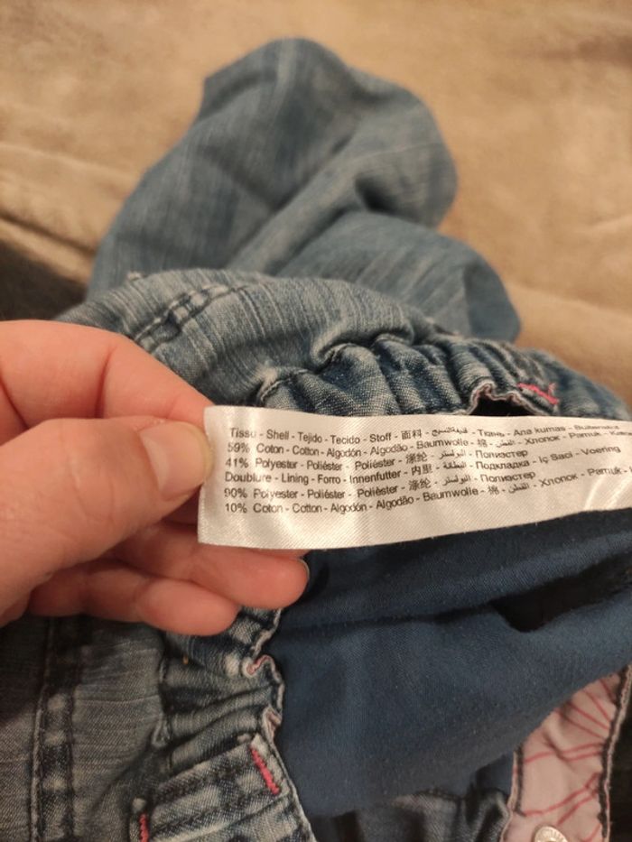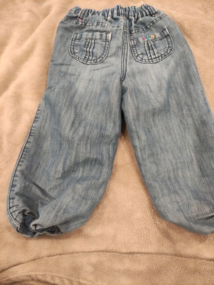 Beaucoup porté mais encore en bon état. À noter une légère décoloration au niveau genoux et fesses.