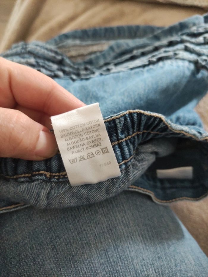 En jeans. Taille peu extensible. Beaucoup portée mais toujours en très bon état.