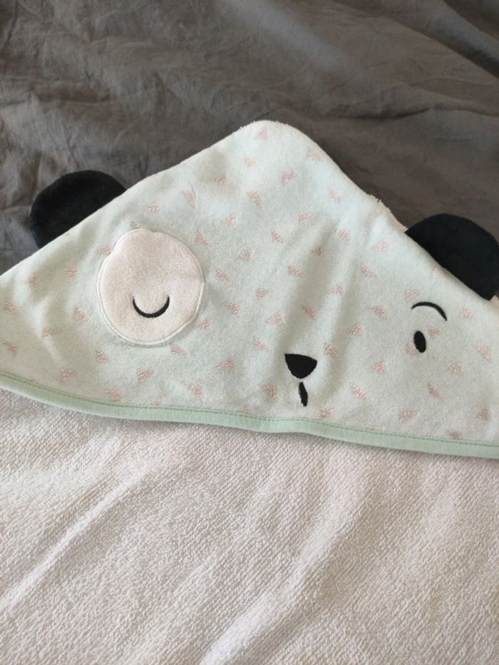 Sortie de bain bébé. A servi mais bon état. À passer en sèche linge pour que le tissu redevienne tout doux. Pas abîmé du tout.