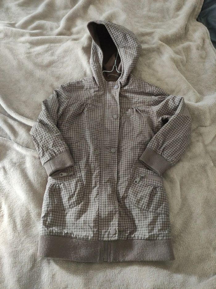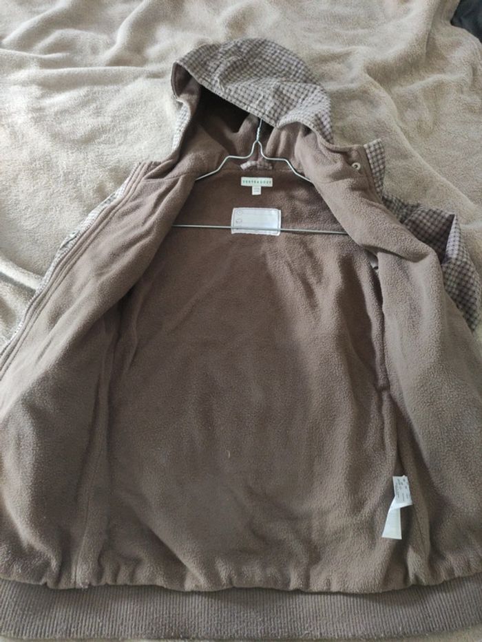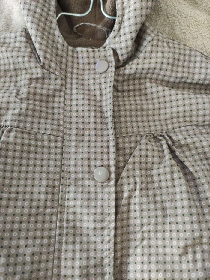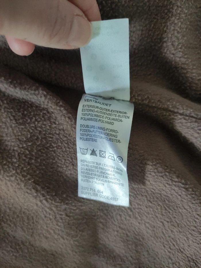 Manteau en très bon état. La peinture légèrement éraflée sur une pression. Extérieur polyamide intérieur polaire. Pas de bourrage donc idéal en mi-saison.