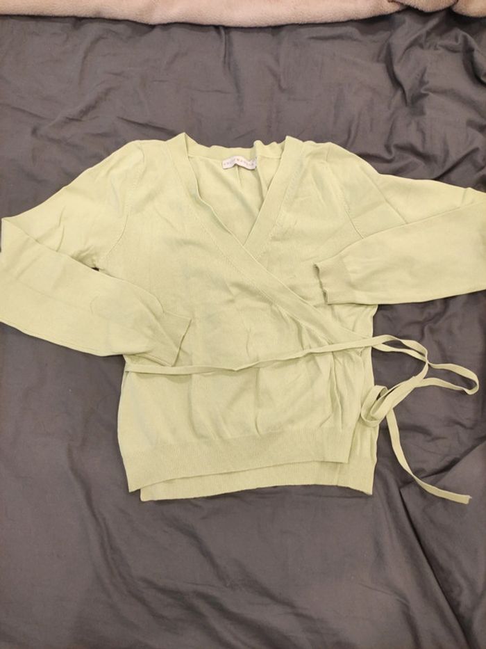 Taille 38/40. Pull cache coeur. En très bon état. Mais quelques fils sur le tissu.