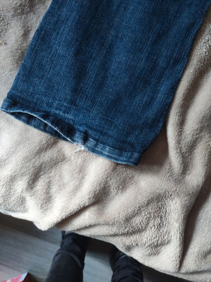 Taille 40. Réglable taille. En très bon état hormis abîmé en bas de jambes. Matière jeans stretch.