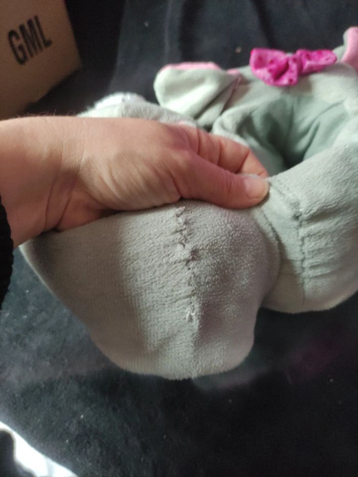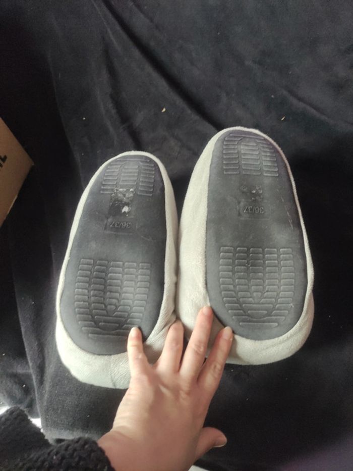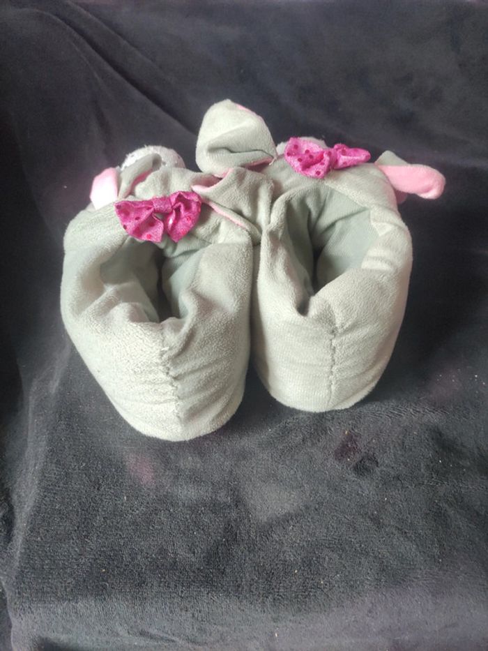 Chaussons originaux peu portés Quelques paillettes se sont décollées de la truffe. Petit défaut couture d'origine (ce n'est pas l'usure).