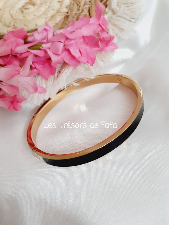 🌸 Bracelet jonc en acier inoxydable doré. 🌸 Coloris: noir. 🌸 Diamètre : 6 cm.
