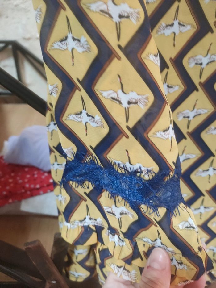 Très jolie blouse Motif grue asiatique #jaunemoutarde #grue #lilietlala