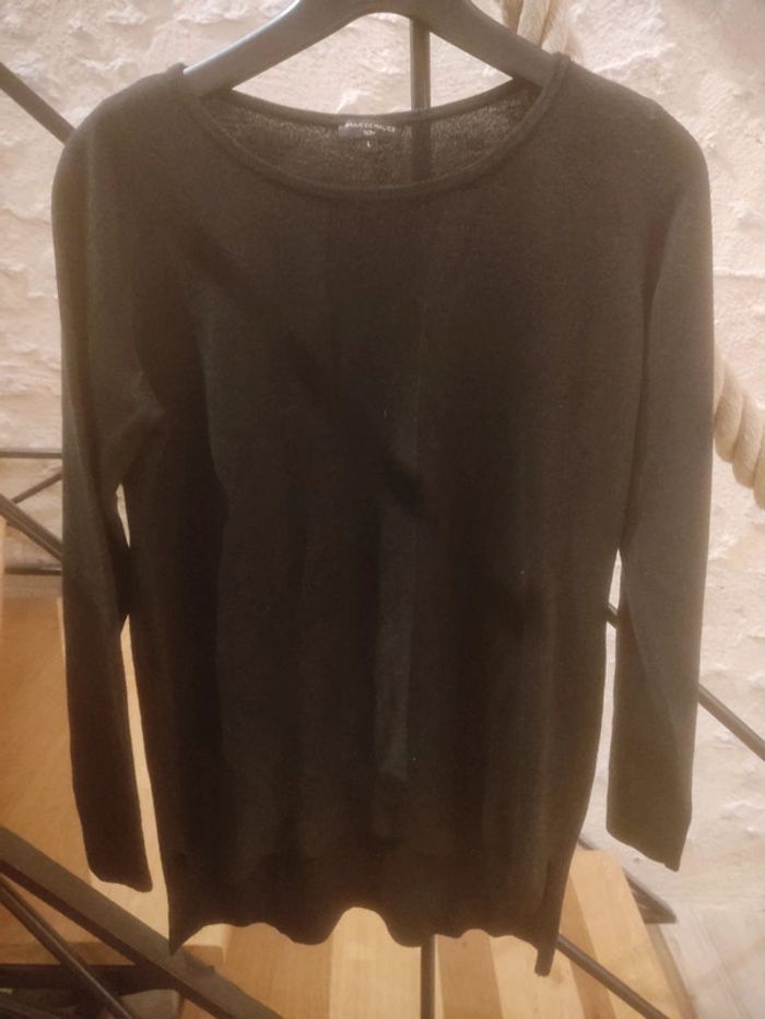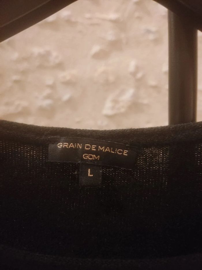 Super agréable à porter, doux Pull noir avec bande sur le milieu, même couleur juste motif (difficile à prendre en photo) Un peu plus long sur l'arrière Super état #pullgraindemalice #pullnoir #pullelegant #graindemalice