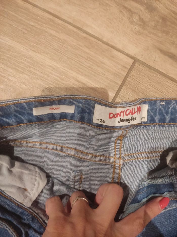 Quais neuf, très peu porté Sur la jambe gauche, ce n'est pas une tâche mais un effet du jean. #coupemom #taillehaute #jennyfercallme #jean