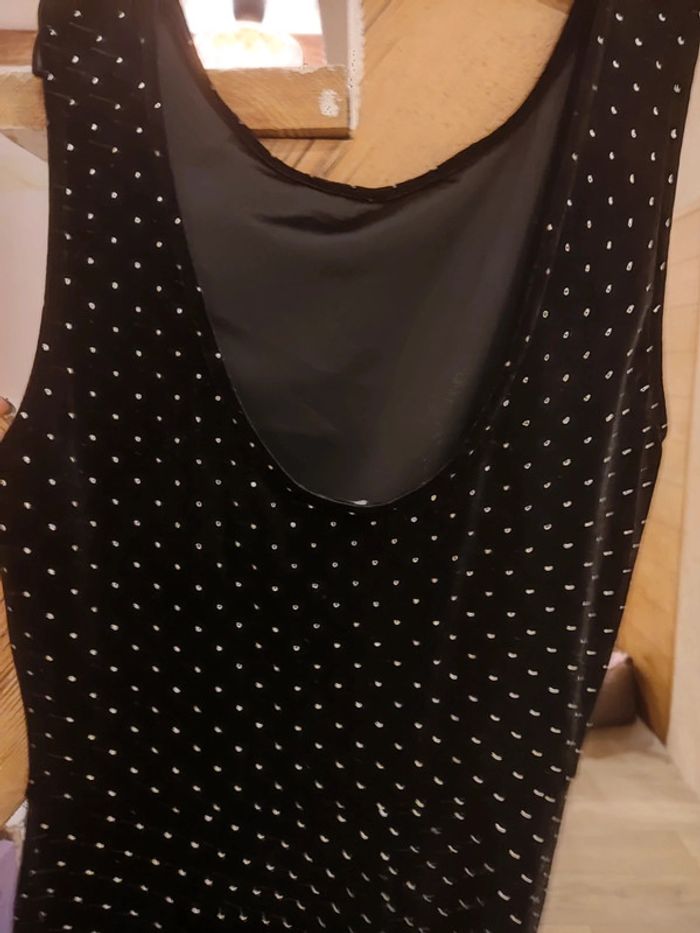 Robe en velours avec petits détails de ronds métalliques. Robe neuve jamais portée Décolleté dans le dos. #robenoire #robevelours #robedesoirée