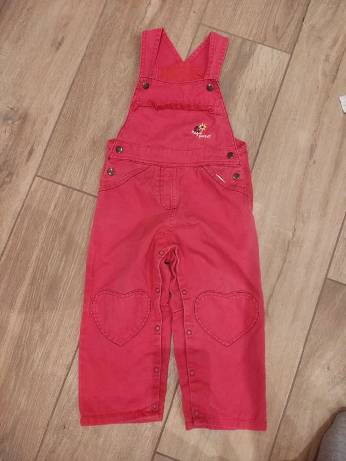 Salopette avec ouverture a l'entre-jambe Bon état 92 cm Motif coeur sur les genoux #salopettefille #salopettejean